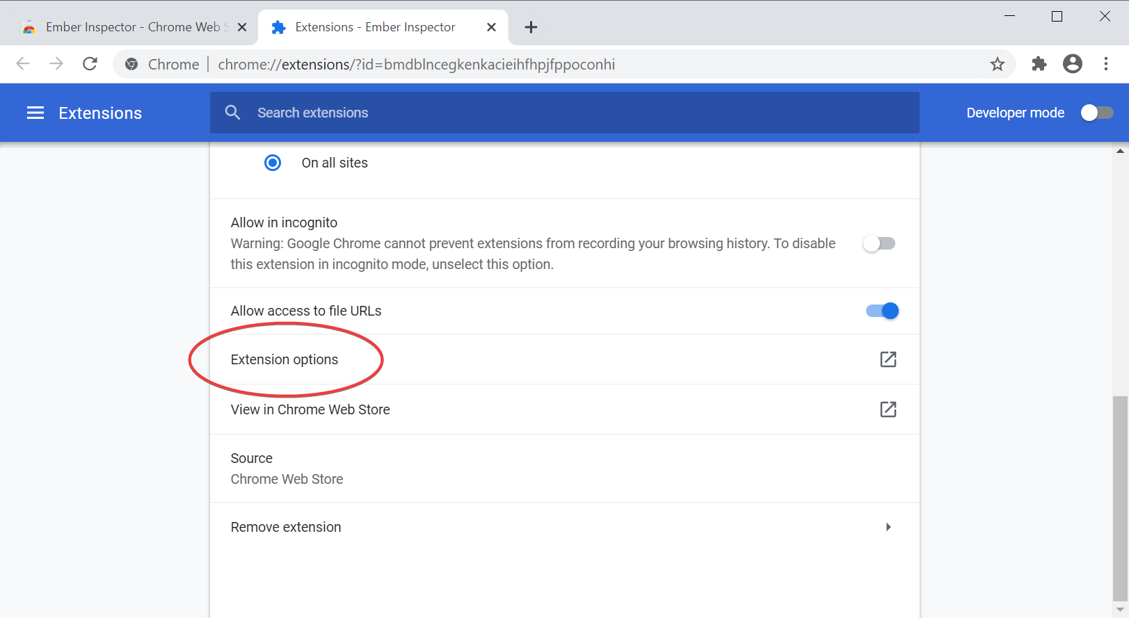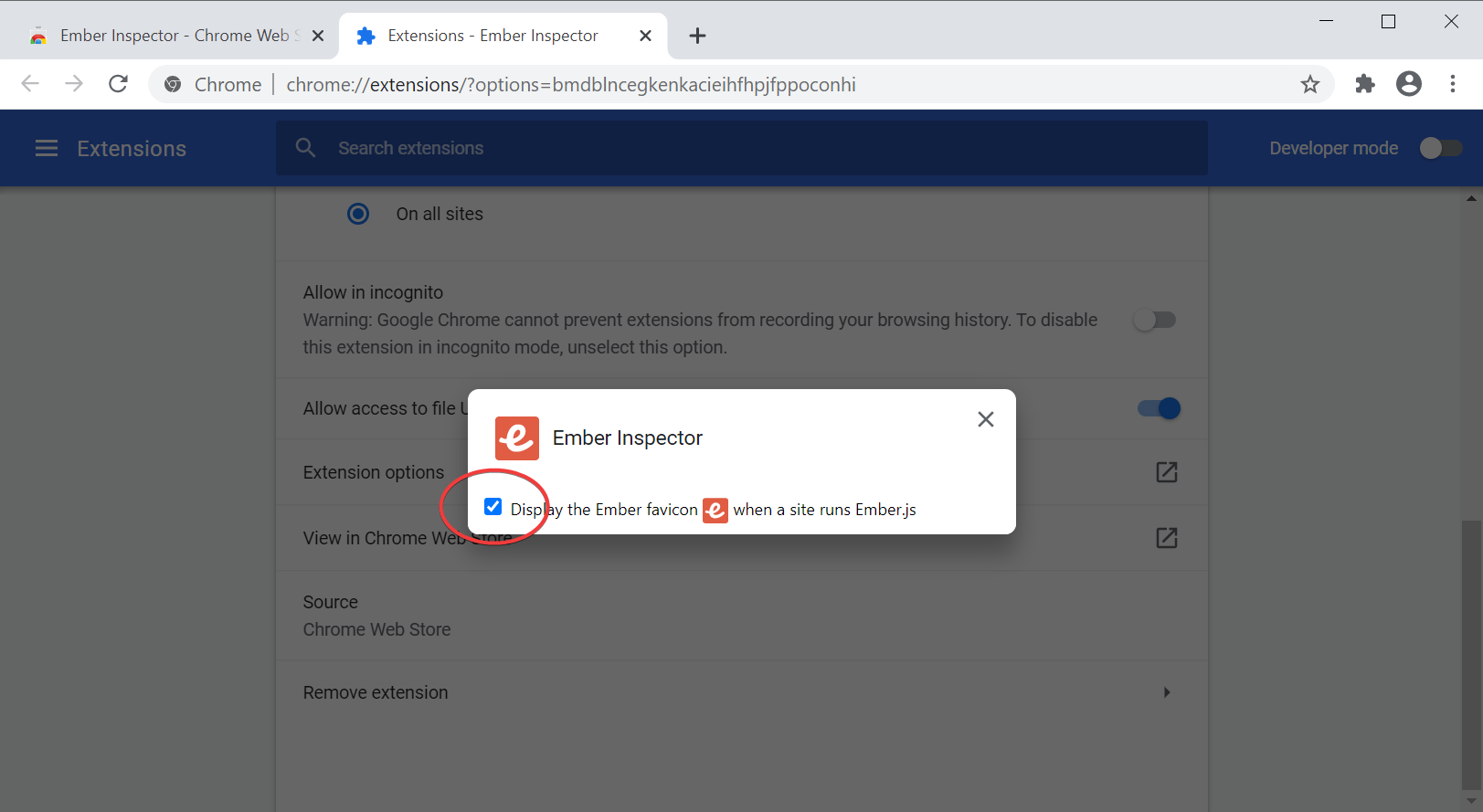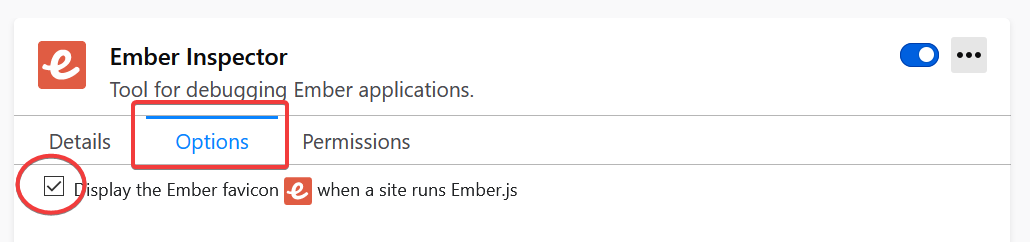 Then make sure the "Display the Ember favicon when a site runs Ember.js" checkbox is checked.