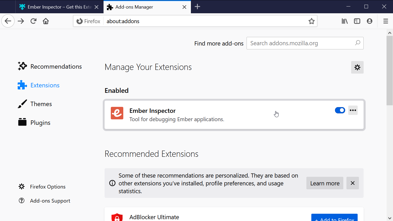 Make sure the "Display the Ember favicon when a site runs Ember.js" checkbox is checked.